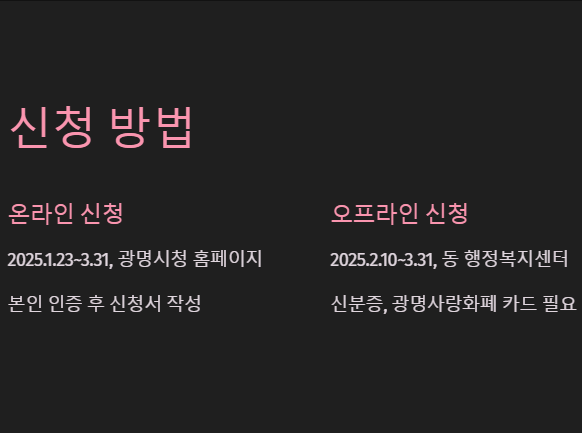 - 광명사랑화폐 카드 (없을 경우 현장에서 발급 가능)
