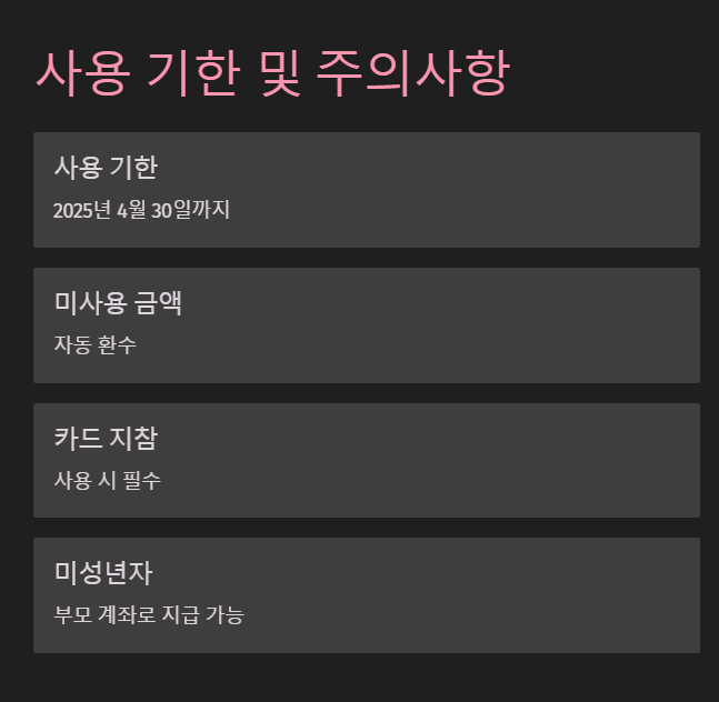 - 기한 내 사용하지 않은 금액은 자동으로 환수됩니다.