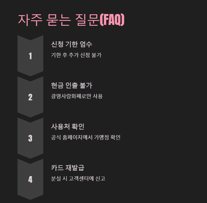 - 지원금 사용 시 광명사랑화폐 카드를 반드시 지참하세요.