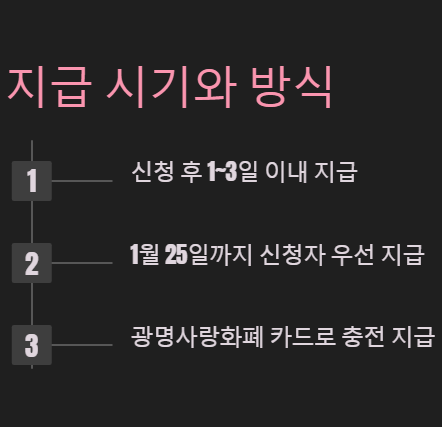 - 광명사랑화폐 카드를 통해 충전 형식으로 지급