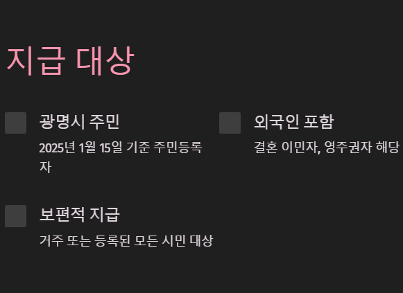 광명시에 거주 중이거나 거주 등록이 되어 있다면 누구나 지원금을 받을 수 있습니다.