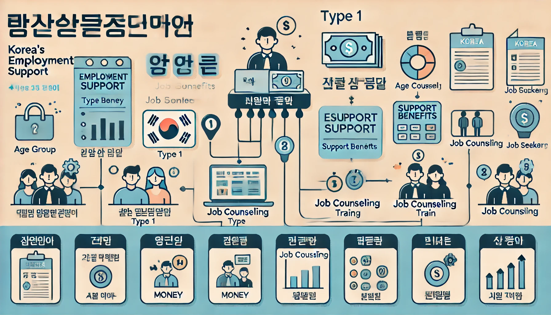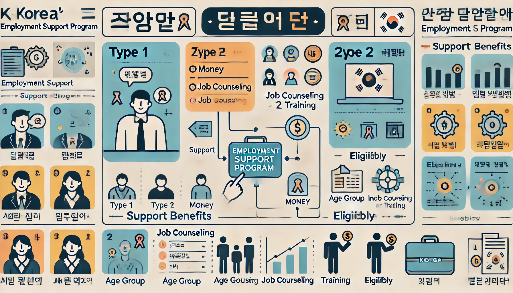 - 1유형: 취업취약계층에 속하는 저소득 구직자 대상으로 구직촉진수당 및 맞춤형 취업지원