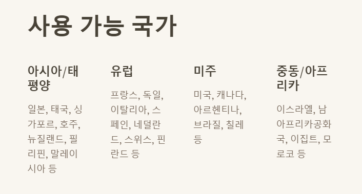 - 제네바 협약(1949) 및 비엔나 협약(1968) 가입국에서 사용 가능