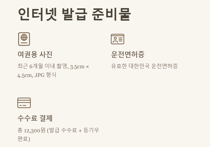 - 이 경우에도 신분증, 여권용 사진, 수수료 등 준비물을 미리 챙기세요.