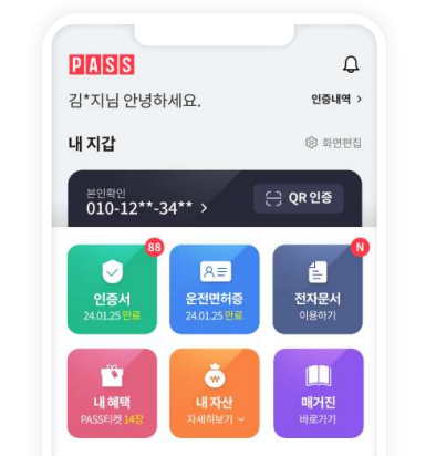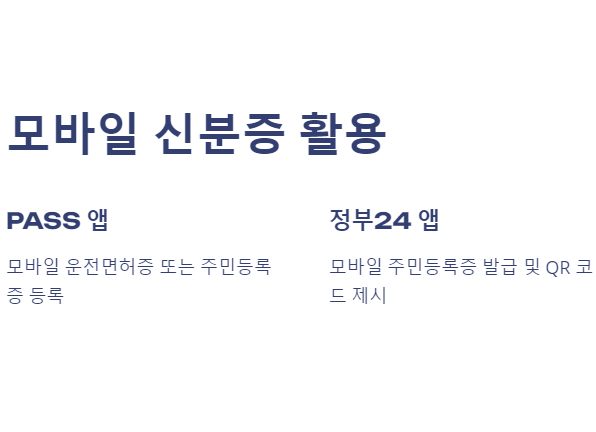 - PASS 앱: 모바일 운전면허증이나 주민등록증을 등록 후 사용.