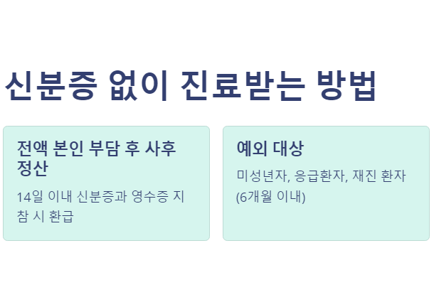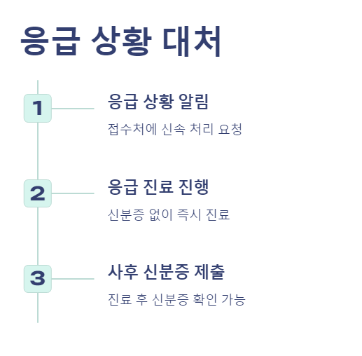 - 응급환자: 응급 상황에서는 신분증이 없어도 진료가 가능합니다.