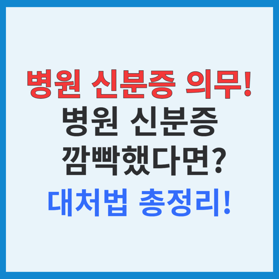 2024년 5월 20일부터 병원을 방문할 때 신분증 지참이 의무화되었습니다. 이는 건강보험 부정수급 방지와 환자 안전을 위한 정책으로, 신분증이 없는 경우 건강보험 적용이 제한될 수 있습니다. 하지만 걱정하지 마세요. 신분증을 깜빡했더라도 아래 방법을 통해 병원 이용이 가능합니다.