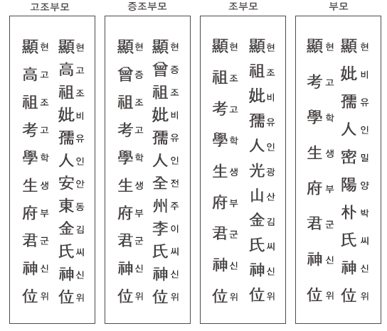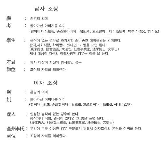 - '顯妣'는 돌아가신 어머니를 뜻합니다.