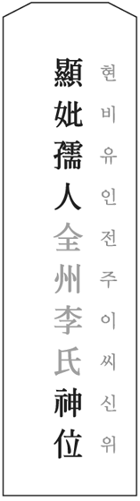 - '孺人'은 고인의 품위를 나타내는 표현이고, '○○○氏'는 성씨를 적습니다.