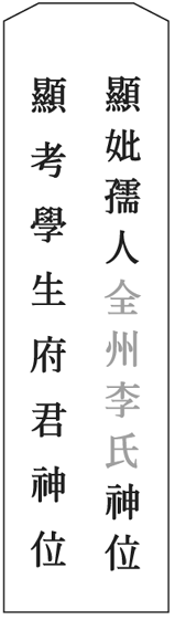 - 顯妣 孺人 ○○○氏 神位