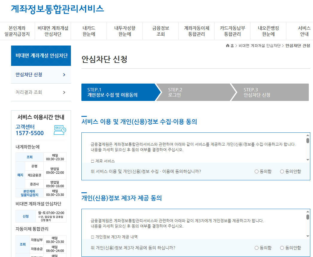 신청자는 한국신용정보원에 등록되어, 금융기관에서 비대면으로 계좌를 개설하려고 할 경우 실시간으로 차단됩니다.