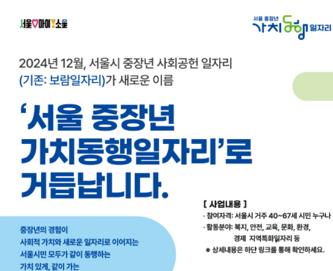 서울시에서 중장년층을 위한 가치동행일자리에 지원자 모집을 시작한다는 소식을 들어보셨나요?