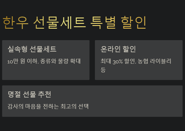 - 선물세트는 최대 30% 할인된 가격에 구매할 수 있으며, 온라인몰에서도 판매됩니다.