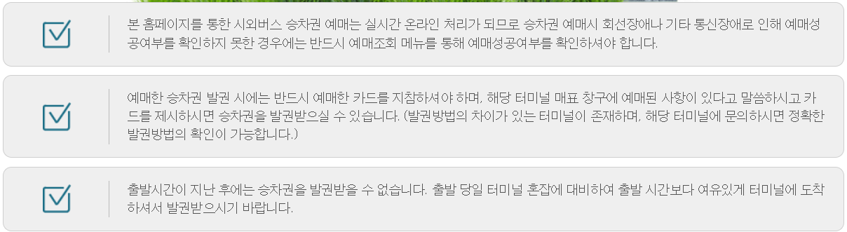 👉 모바일 앱: "시외버스모바일" 앱 설치 후 이용 가능
