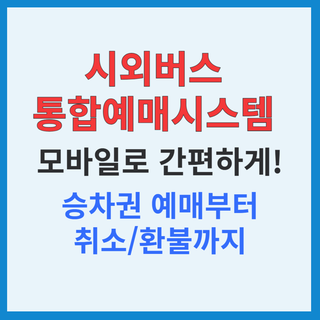 시외버스 통합예매 사이트를 통해 승차권 예매와 취소 및 환불 절차를 숙지하면 더욱 편리하게 이용할 수 있습니다. 특히 출발 시간에 맞춰 미리 취소 요청을 하면 불필요한 수수료를 피할 수 있으니, 여행 계획 시 시간을 잘 관리해보세요!