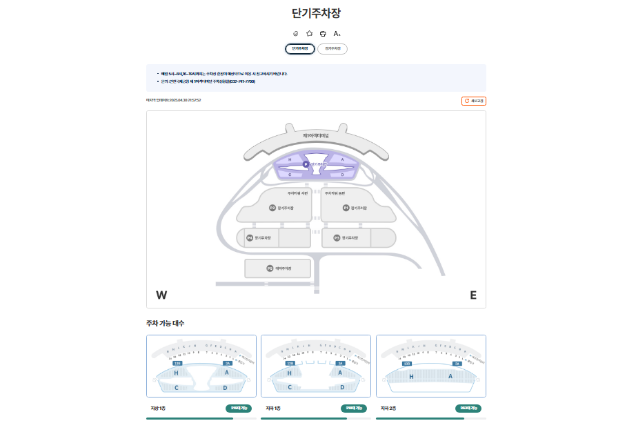 특히 단기주차장은 빠르게 만차가 되며, 예약하지 않은 차량은 장기주차장 또는 외부 민영 주차장으로 우회해야 하는 경우가 많습니다.