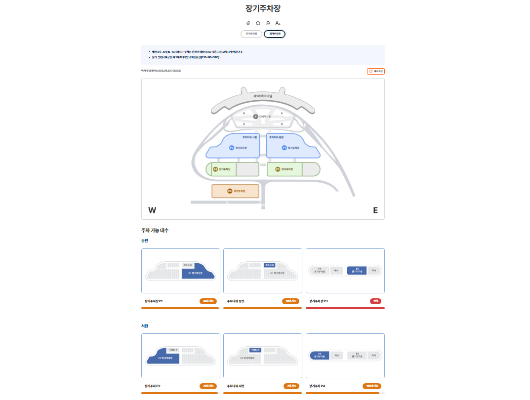 공항 출발 전, 혼잡도를 확인한 후 여유 있는 주차장으로 이동하는 것이 시간 절약에 큰 도움이 됩니다.