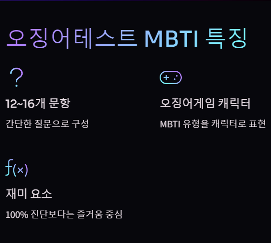 - 실제 MBTI 검사는 아니므로, 100% 진단보다는 재미 요소가 크다는 점을 참고해 주세요.