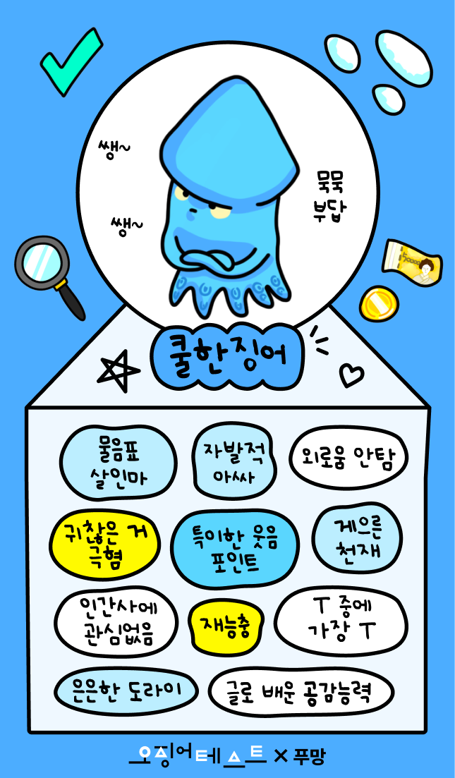 이 글이 오징어테스트 MBTI에 대한 궁금증을 해소하고, 좀 더 풍성한 대화와 자기 이해로 이어지는 계기가 되길 바랍니다.
