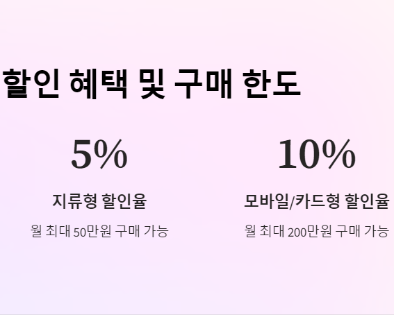 - 구입 방법: 카드형/모바일 상품권 구매 시 적용