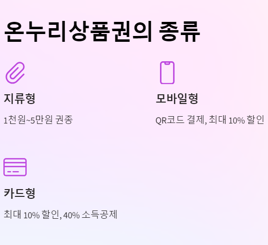 온누리상품권은 크게 지류형, 모바일형, 카드형 상품권으로 나뉩니다.