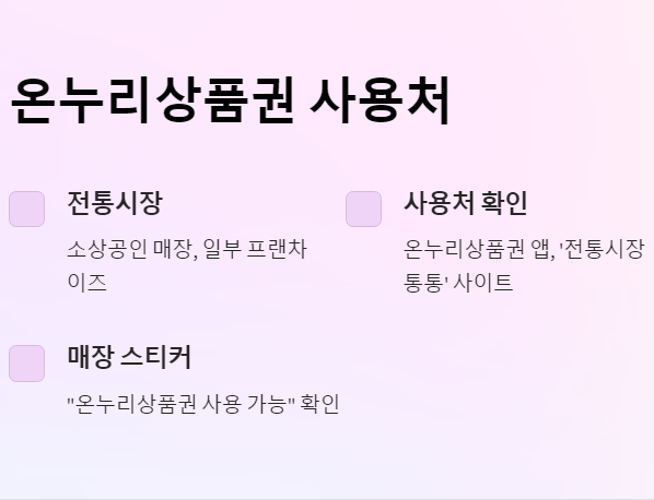 - 사용처: 전통시장, 소상공인 매장, 일부 프랜차이즈 매장