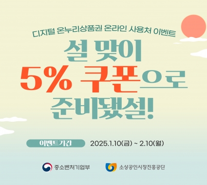 설맞이 행사 기간 동안 온누리상품권의 할인율이 10%에서 15%로 상향됩니다!