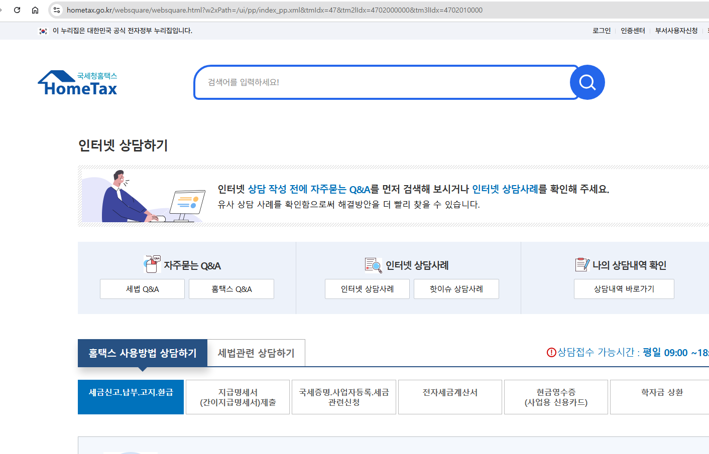 인터넷 상담: 국세청 홈택스 홈페이지에서 온라인 상담을 신청할 수 있습니다.