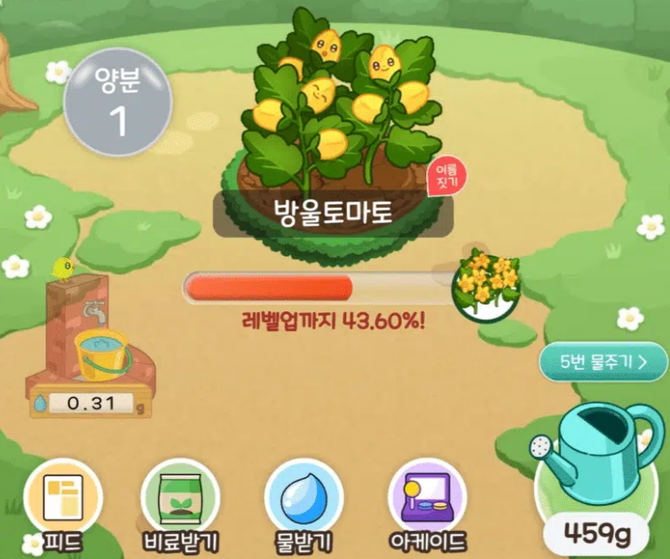 - 비료 75 이상일 때 물 사용 – 경험치 보너스를 최대로 활용할 수 있습니다.