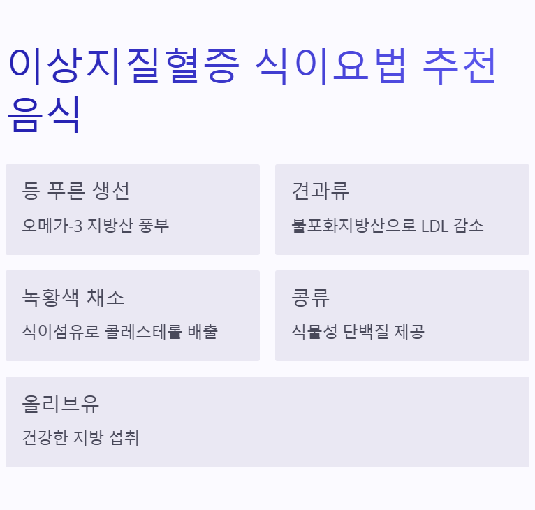 이상지질혈증과 고지혈증 관리는 식이요법과 생활습관 개선이 필수입니다. 특히, 정제된 탄수화물과 포화지방을 줄이고, 운동을 병행하면 치료 효과가 배가됩니다.