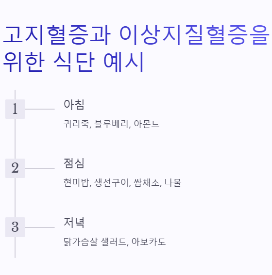 고지혈증과 이상지질혈증을 위한 식단 예시
