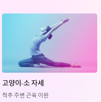- 고양이-소 자세: 네발기기 자세에서 허리를 천천히 위아래로 움직이며 척추를 풀어줍니다.