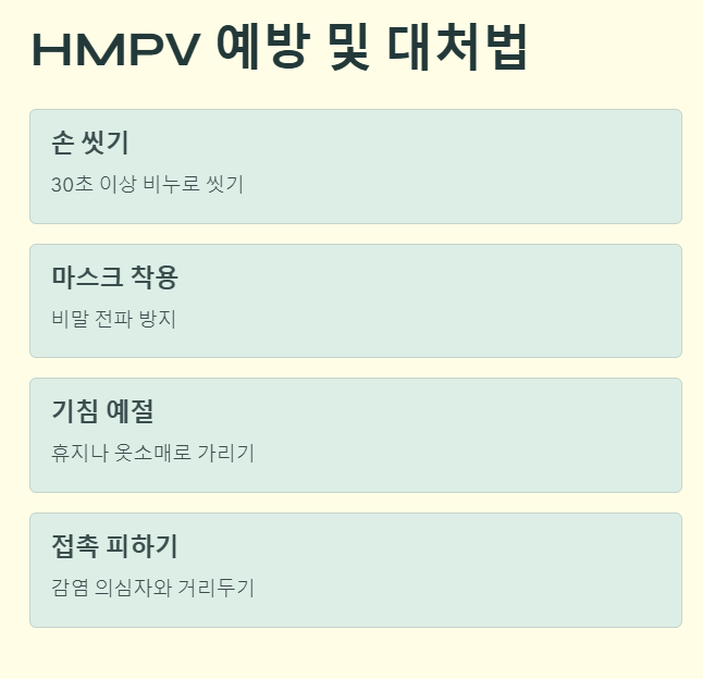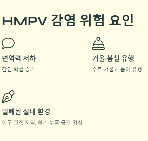 - 겨울·봄철 유행: HMPV는 주로 겨울과 봄에 유행하는 경향이 있습니다.