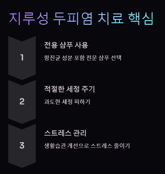 지루성 두피염 치료에서 가장 중요한 것은 샴푸 선택입니다. 일반 샴푸가 아닌 항진균 성분이 포함된 전문 샴푸를 사용하는 것이 효과적입니다.