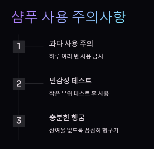- 과다 사용 주의: 하루에 여러 번 감으면 두피 보호막 손상