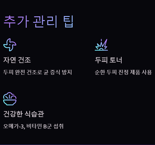- 전용 샴푸 사용: 항균, 항염 성분이 포함된 샴푸를 사용하세요.