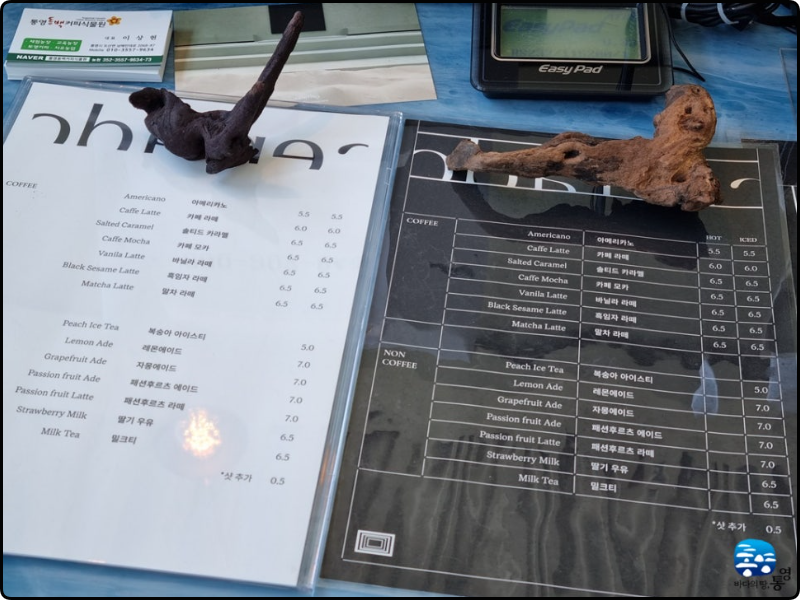 통영동백커피식물원의 메뉴는 입장료에 포함된 기본 음료 외에도 다양한 디저트와 시그니처 음료가 준비되어 있습니다.