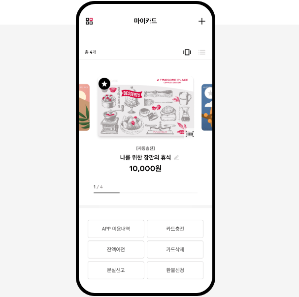 - 기프티콘 등록: 투썸하트 애플리케이션에 기프티콘을 등록합니다.