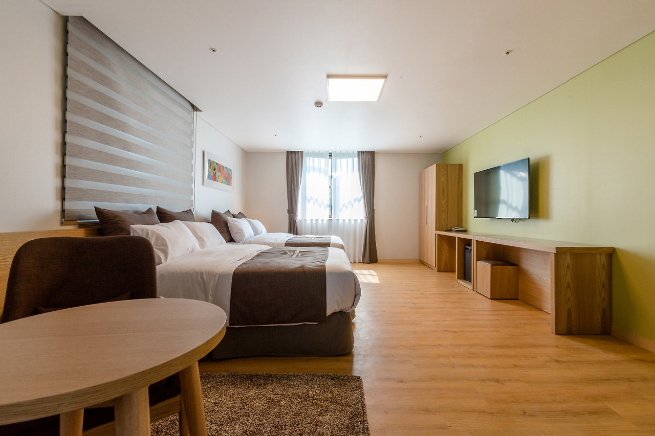 - 다양한 부대시설: 힐링 공간 하늘정원, 편백 찜질방, 수영장, 잔디 캠핑장 등 다채로운 시설이 준비되어 있어 여유로운 숙박이 가능합니다.