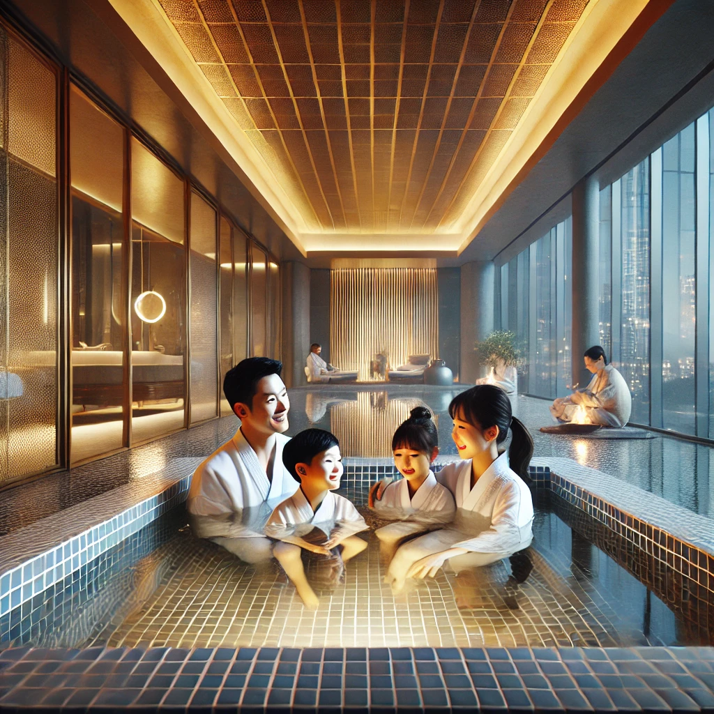 비교 포인트: 일반 온천과 달리 가족탕은 개인 전용 온천수 욕조와 최첨단 시설로 구성되어 있어, 보다 독립적인 휴식과 힐링을 제공합니다.