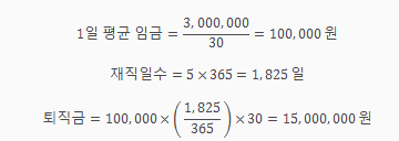 퇴직금 계산 예제: