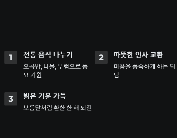 이런 인사말과 함께 부럼이나 오곡밥을 나누면, 서로의 안녕과 복을 기원하는 명절의 의미가 더욱 깊어집니다.
