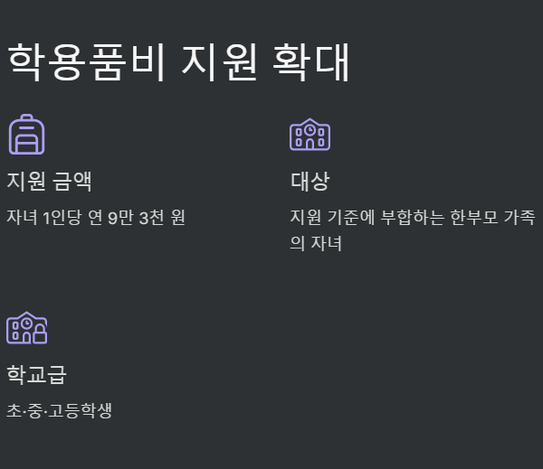 한부모 가정의 교육 부담을 덜기 위한 학용품비 지원도 확대됩니다.