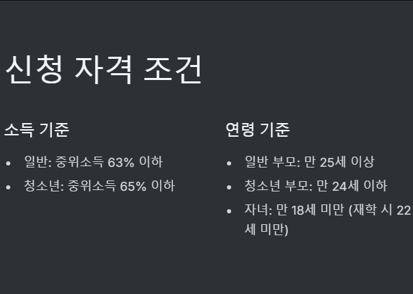 - 대상: 지원 기준에 부합하는 한부모 가족의 자녀.