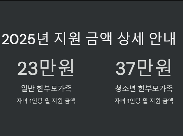 - 지원 금액: 자녀 1인당 월 37만 원으로 인상.