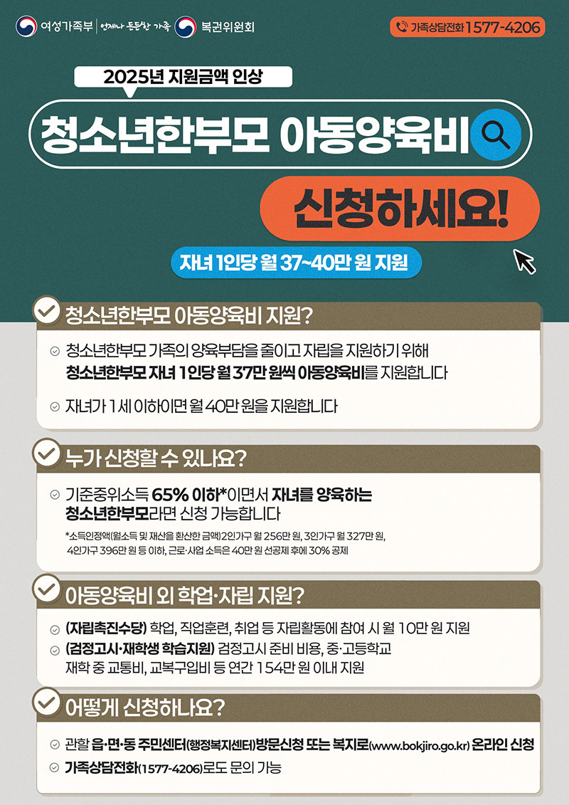 2025년 한부모 가족 아동양육비 지원 FAQ
