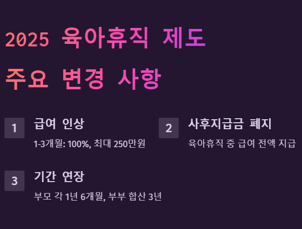 2025년부터 육아휴직 급여가 다음과 같이 상향 조정됩니다: