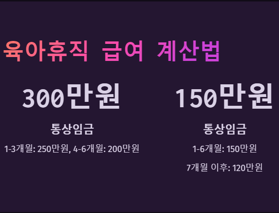 - 1~3개월: 통상임금의 100%, 월 최대 250만 원