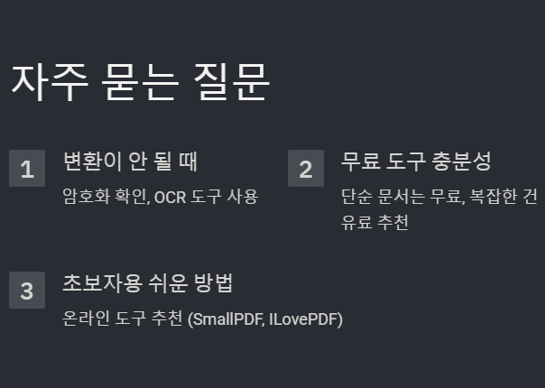- 여러 도구 중 하나라도 정상 변환이 안 된다면, 다른 프로그램이나 온라인 서비스로 시도해보는 것도 방법입니다.